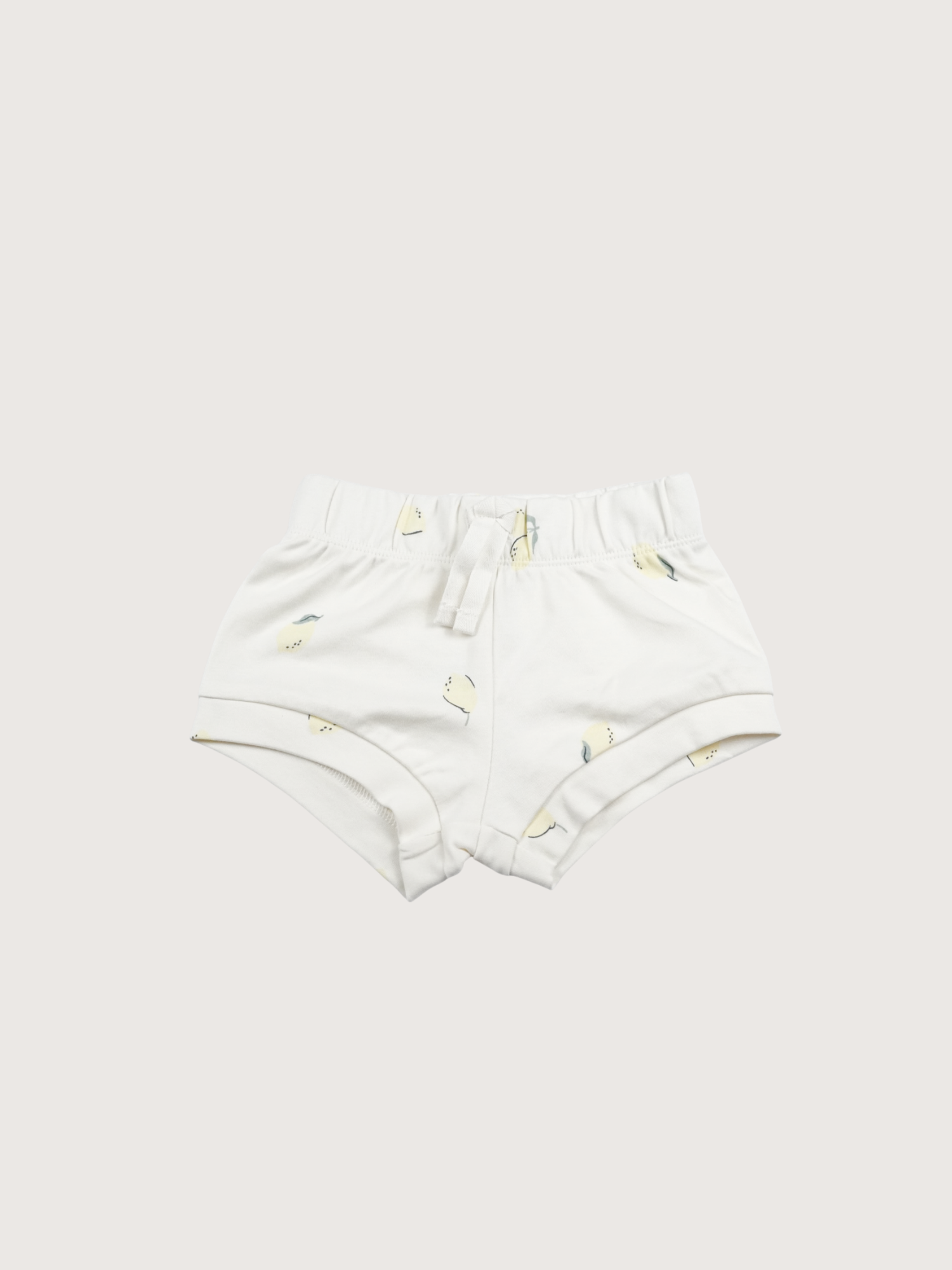 These soft shorts with a cheerful lemon print are a must-have for sunny days. With the elastic waistband and bow, they are wonderfully comfortable and stay in place during every adventure. Combine with the matching romper for a complete, summer outfit.