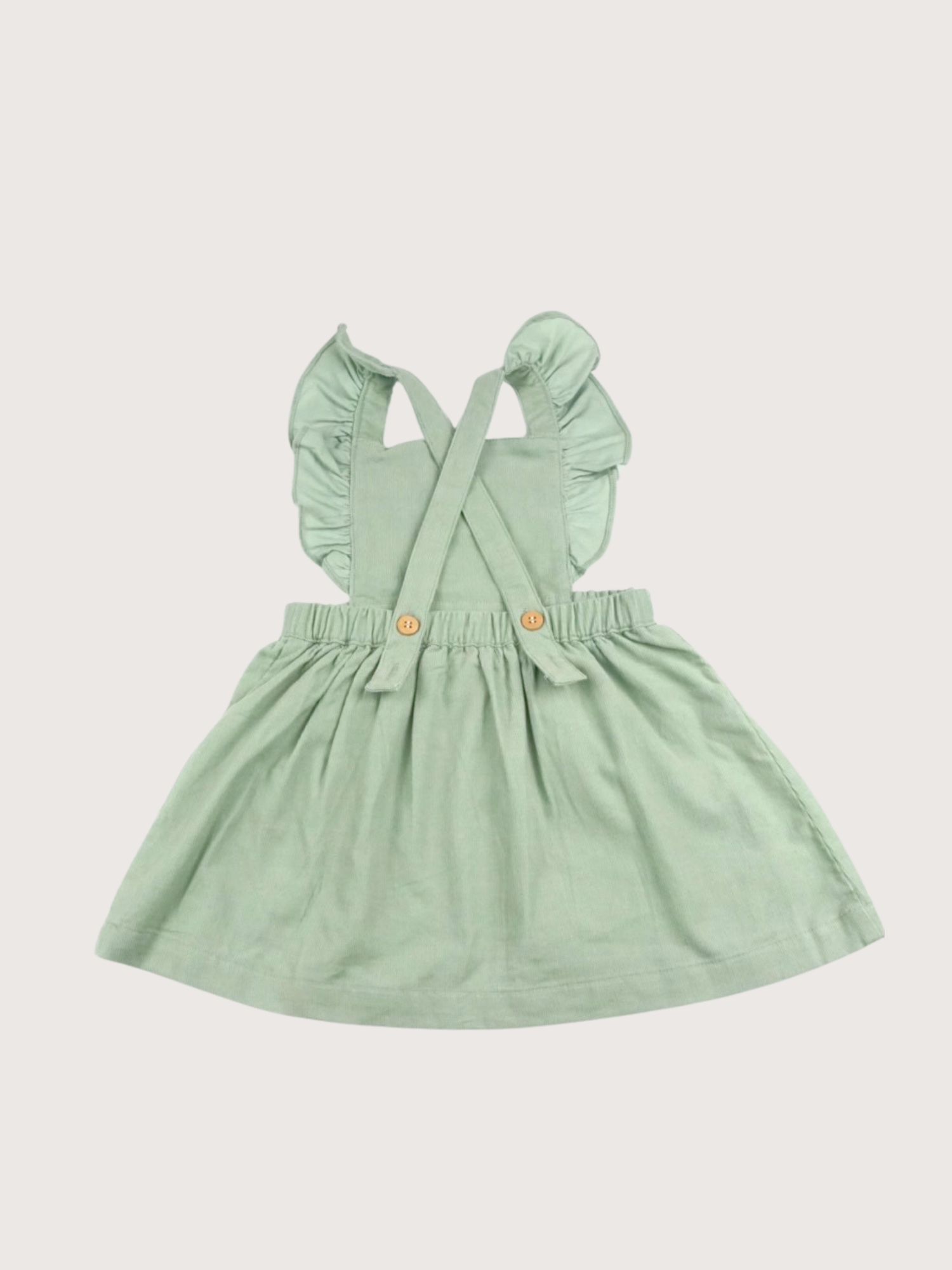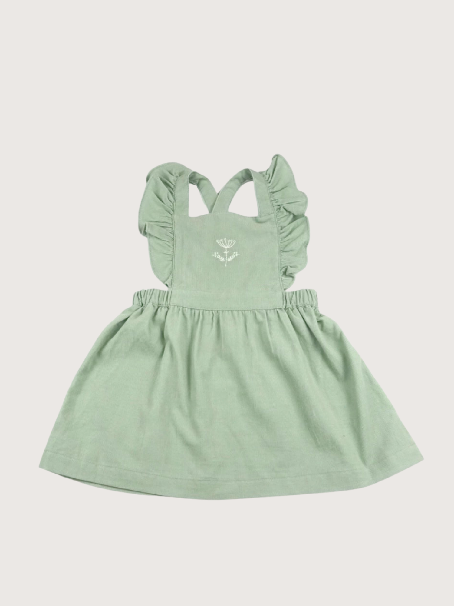 Let your little one shine in this enchanting green dress with cute ruffles and embroidered flower detail. Made from 100% soft cotton and finished with a white blouse with collar - perfect for sunny days, parties or just because. Comfortable, stylish and sweet in every detail.