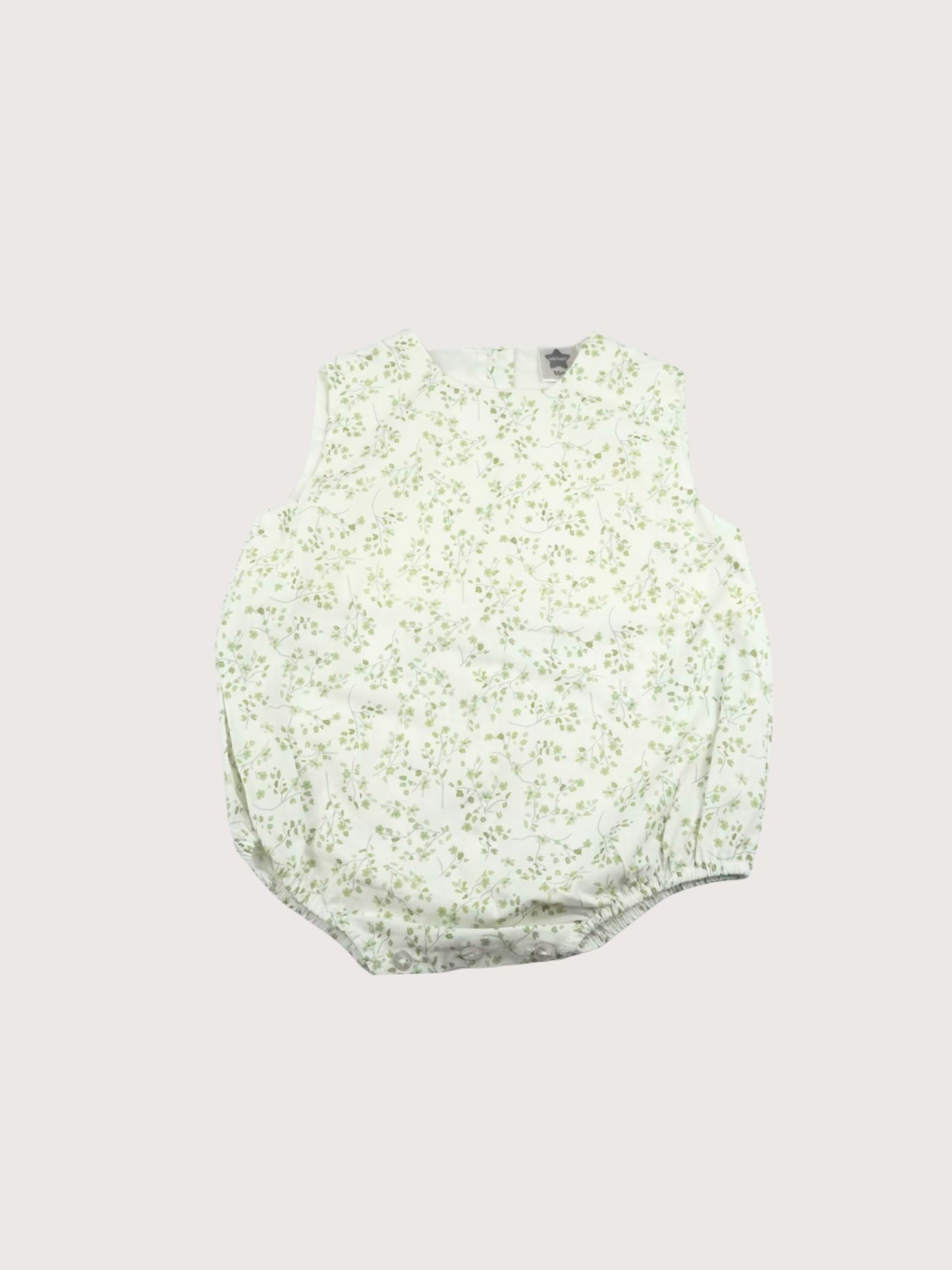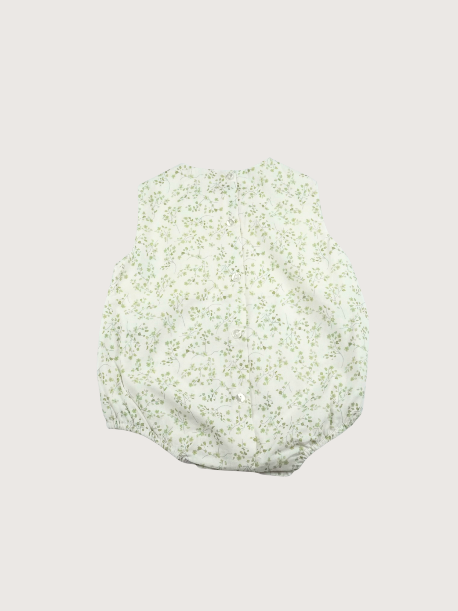 A summer romper with a subtle floral print and soft shades of green - perfect for your little sprout. The airy fabric and comfortable fit ensure freedom of movement and style. For little adventurers with an eye for charm.