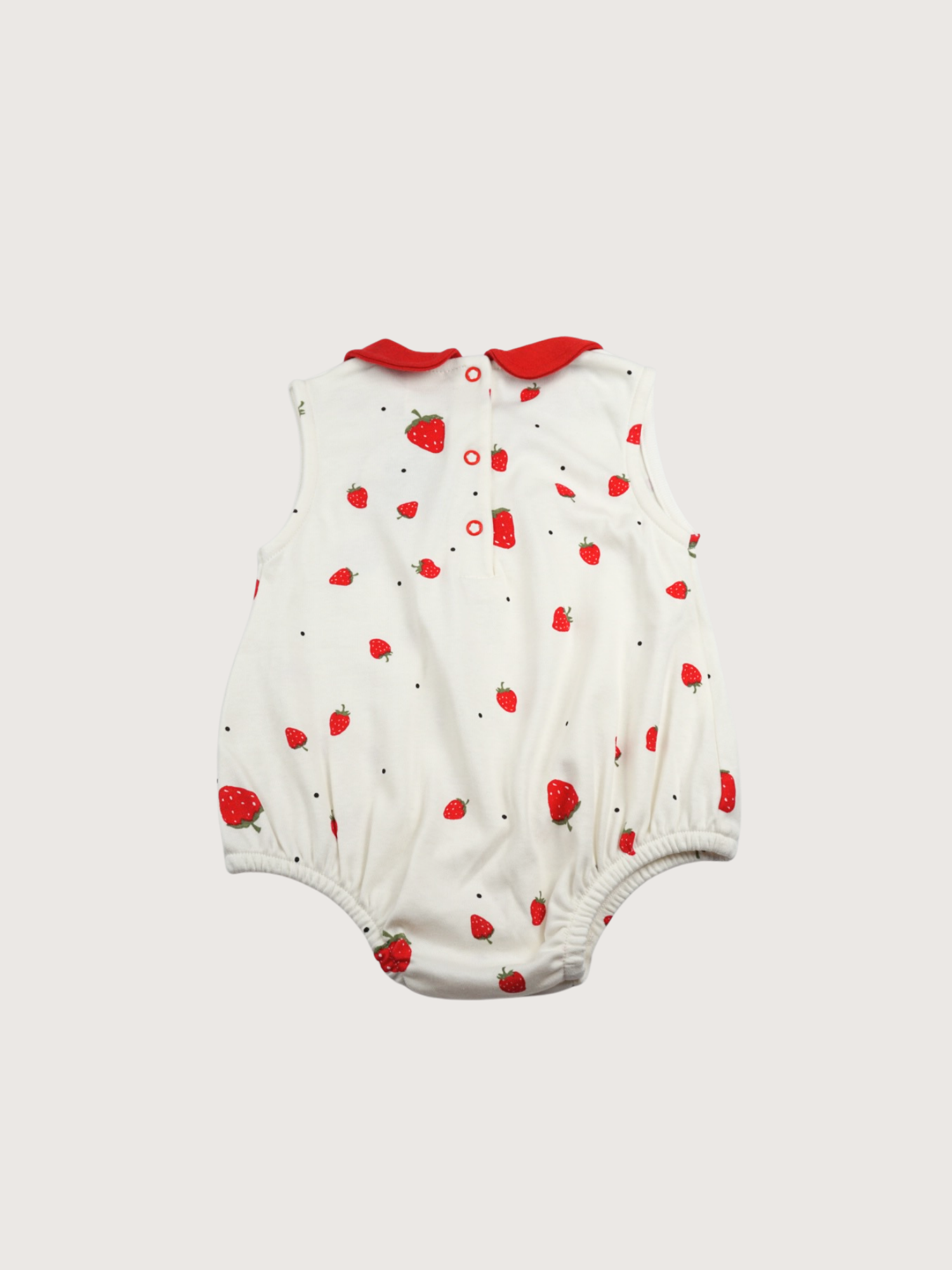 This cheerful romper with strawberry print and cute red collar is a summer must-have. Made from soft cotton and equipped with handy press studs - perfect for little sweet tooths who like to shine